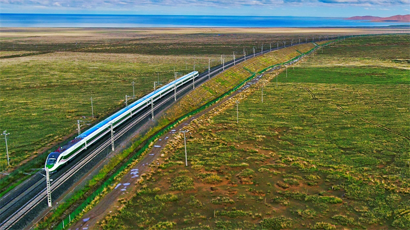 復(fù)興號路經(jīng)青海湖地區(qū)。青藏集團公司供圖