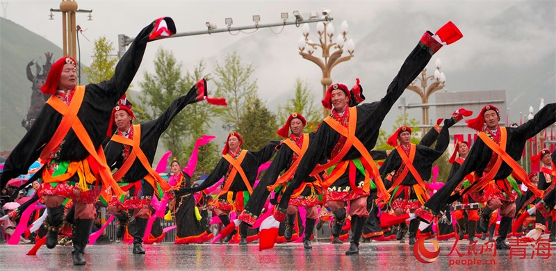 騎乘賽馬、馳騁草原是高原騎手迎賓的禮節(jié)。由玉樹(shù)市賽馬協(xié)會(huì)百人百騎組成的“嘎結(jié)古馬隊(duì)”領(lǐng)銜出場(chǎng),100名玉樹(shù)市屬學(xué)校代表組成的迎賓哈達(dá)方隊(duì)緊隨其后。身著色彩斑斕的結(jié)古傳統(tǒng)服飾方隊(duì)、風(fēng)格獨(dú)特的新寨卓舞方隊(duì)、玉樹(shù)地區(qū)最民眾化的舞蹈——結(jié)古伊舞方隊(duì)、入選國(guó)家級(jí)非物質(zhì)文化遺產(chǎn)名錄的白龍卓舞方隊(duì)、小伙腳鈴震撼的稱(chēng)多方隊(duì)……康巴兒女用火熱的情懷與玉樹(shù)共舞,共同開(kāi)創(chuàng)更加美好的未來(lái)。