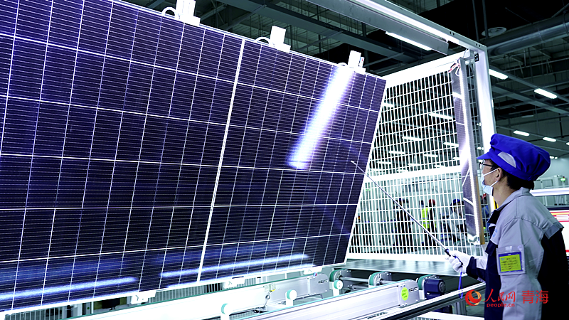 青海省西寧市南川工業(yè)園區(qū)內(nèi),超高功率光伏組件生產(chǎn)忙。 人民網(wǎng)記者 楊啟紅攝
