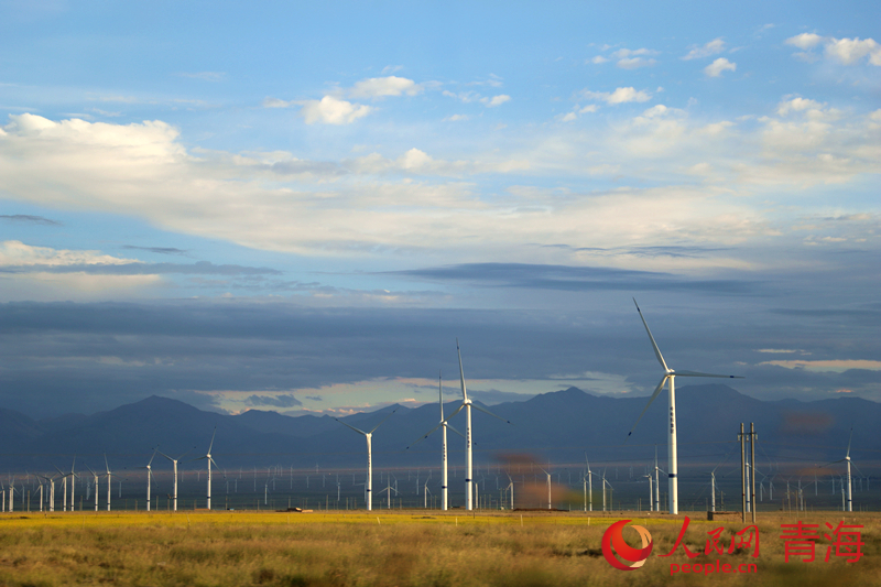 青海省海南藏族自治州境內(nèi),成百上千的大型風(fēng)力發(fā)電機隨風(fēng)旋轉(zhuǎn),生產(chǎn)綠電。 人民網(wǎng)記者 楊啟紅攝