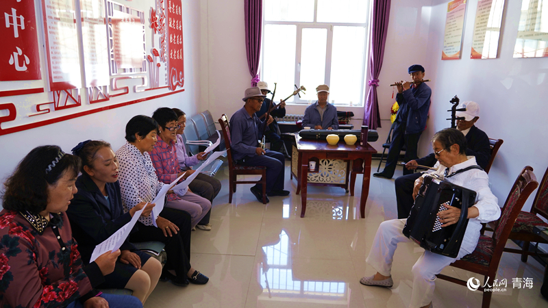 “咱們村子是個(gè)好地方,平展展兒的很寬敞;肥沃的土地上人們耕種忙……”夏末秋初,高原天朗氣清,青海省海西蒙古族藏族自治州都蘭縣察汗烏蘇鎮(zhèn)民主街社區(qū)的活動室內(nèi),各民族老人們圍坐一起,歌唱新生活,輔之以手風(fēng)琴、笛子、二胡等樂器的和諧音色,悠揚(yáng)聲音飄蕩街巷;