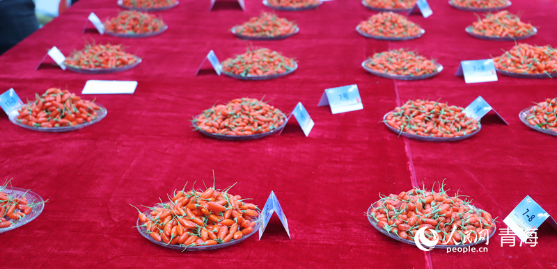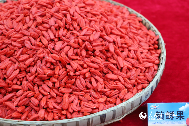 都蘭現代農業(yè)產業(yè)園特色農產品展示交易中心展示的枸杞鮮果。人民網記者 楊啟紅攝