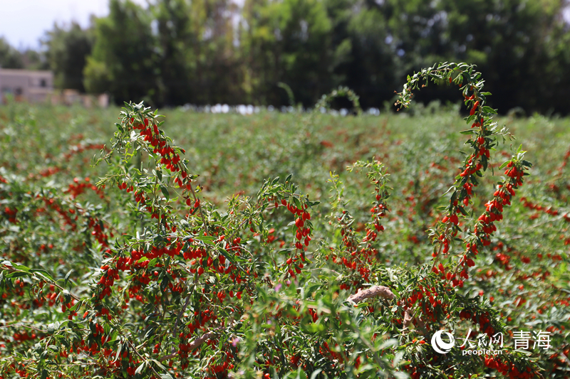 諾木洪枸杞核心區(qū),目之所及皆是掛滿果的枸杞樹。人民網(wǎng)記者 楊啟紅攝