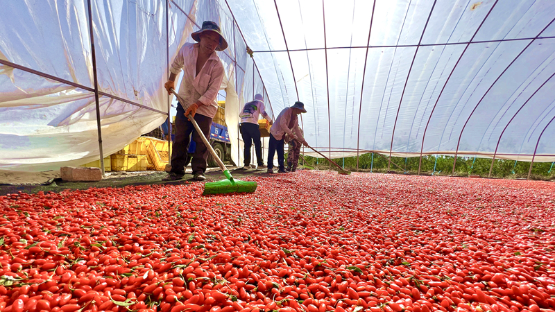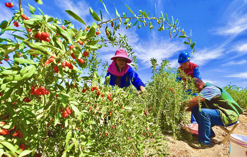 - “枸杞產(chǎn)業(yè)綠了盆地、紅了產(chǎn)業(yè)、富了百姓,走出了一條生態(tài)友好、綠色低碳、特色鮮明的高質(zhì)量發(fā)展之路,取得了顯著的生態(tài)、經(jīng)濟(jì)和社會效益?!毕哪┣锍?,祖國聚寶盆——柴達(dá)木盆地“豐”景獨(dú)好,枸杞紅滿枝頭,種植戶忙采摘?!?/a>