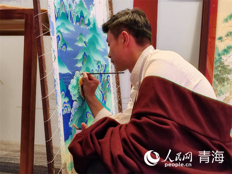 熱貢藝術、土族盤繡、加牙藏族織毯技藝、藏文書法……本次展覽展出的非物質(zhì)文化遺產(chǎn)項目極具青海特色,絢麗奪目,現(xiàn)場觀看的外賓連連豎起大拇指點贊。