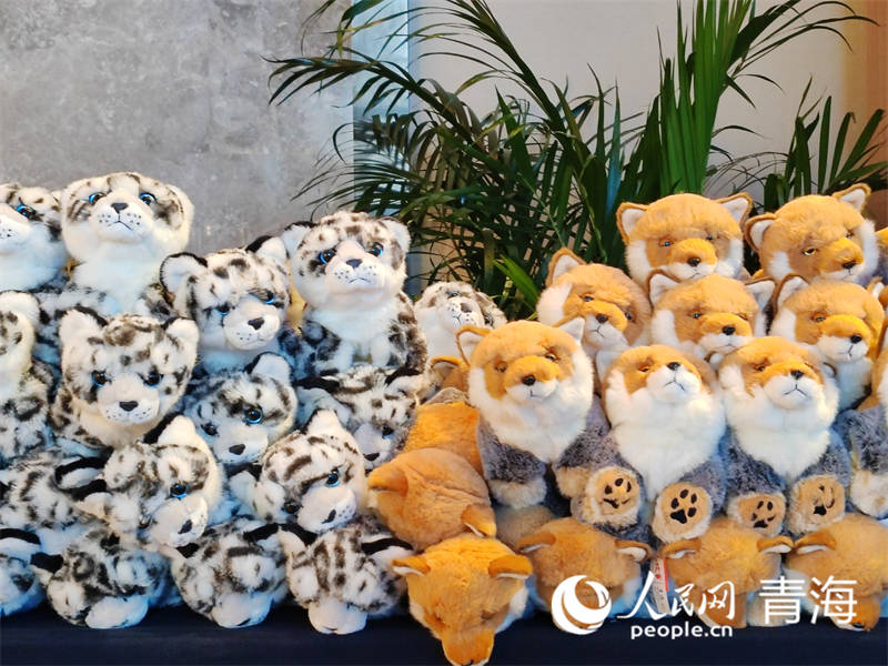展示展覽現(xiàn)場的文創(chuàng)玩偶。李婷攝
