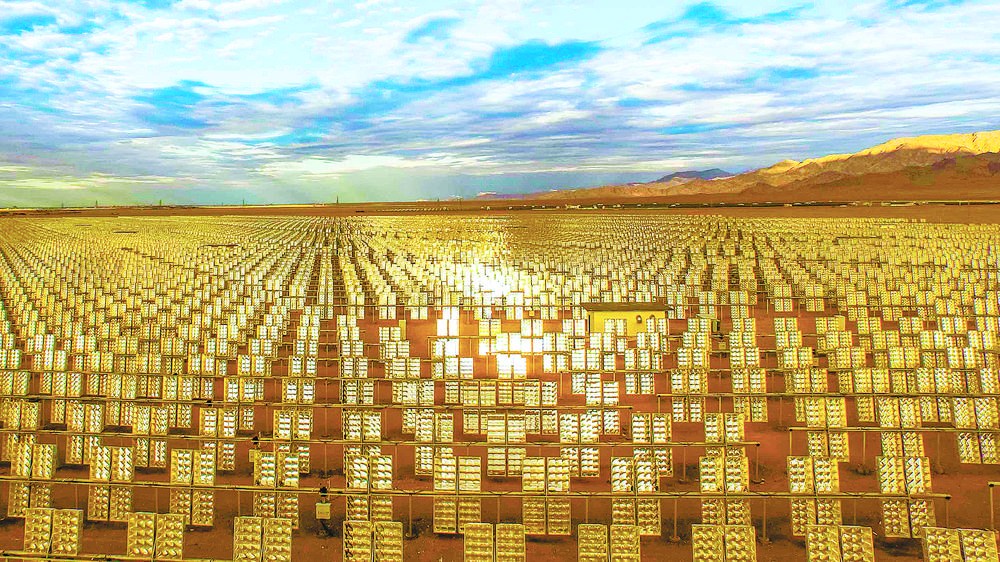在位于青海西北部的柴達(dá)木盆地深處,一排排光伏發(fā)電板一望無(wú)際,猶如一片藍(lán)色海洋……在戈壁中延綿,陽(yáng)光被它們瞬時(shí)轉(zhuǎn)換為電流,通過(guò)條條銀線奔流向遠(yuǎn)方。這片曾經(jīng)的不毛之地如今依托新能源產(chǎn)業(yè)正不斷積蓄綠色動(dòng)能。