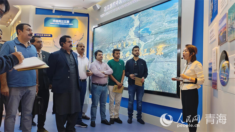 與會外賓參觀三江源國家公園展陳中心。人民網記者 張莉萍攝