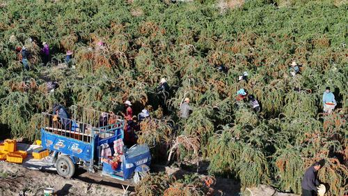 清晨的第一縷陽(yáng)光照耀在青海省海西蒙古族藏族自治州都蘭縣諾木洪枸杞地里,一顆顆成熟的小紅果綴滿枝頭,采摘工滿懷期望,走向田野,大片晾曬的枸杞映紅了柴達(dá)木盆地。在枸杞加工廠里,工人們忙著清洗、晾曬和烘干新鮮枸杞,紅彤彤的枸杞映紅了他們的笑臉。
