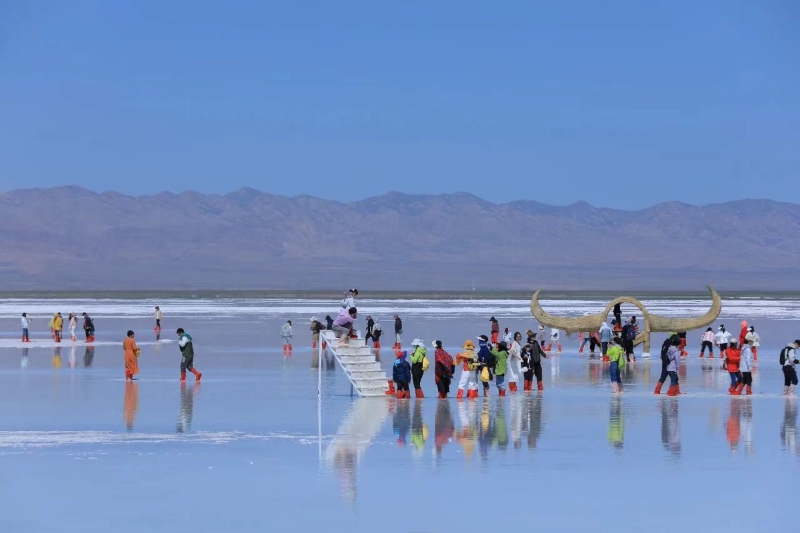 假期游客在茶卡鹽湖景區(qū)。茶卡鹽湖景區(qū)供圖