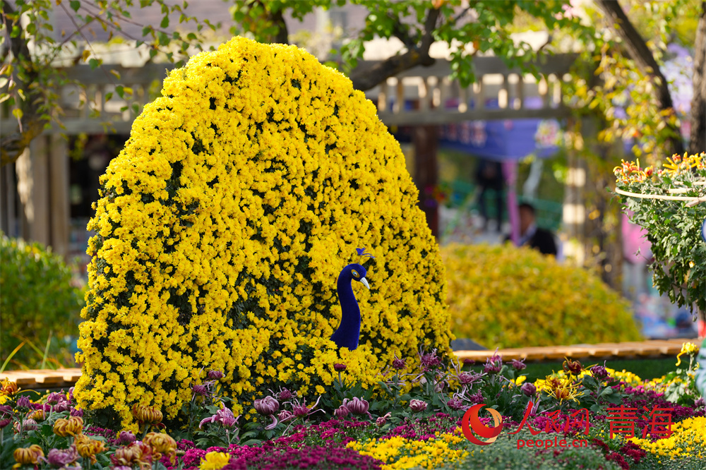 菊花鋪設(shè)的動物造型。人民網(wǎng)記者 甘海瓊攝