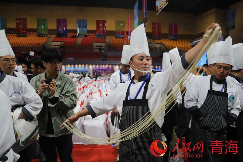 首屆全國拉面技能大賽比賽現(xiàn)場(chǎng)。人民網(wǎng) 馬可欣攝