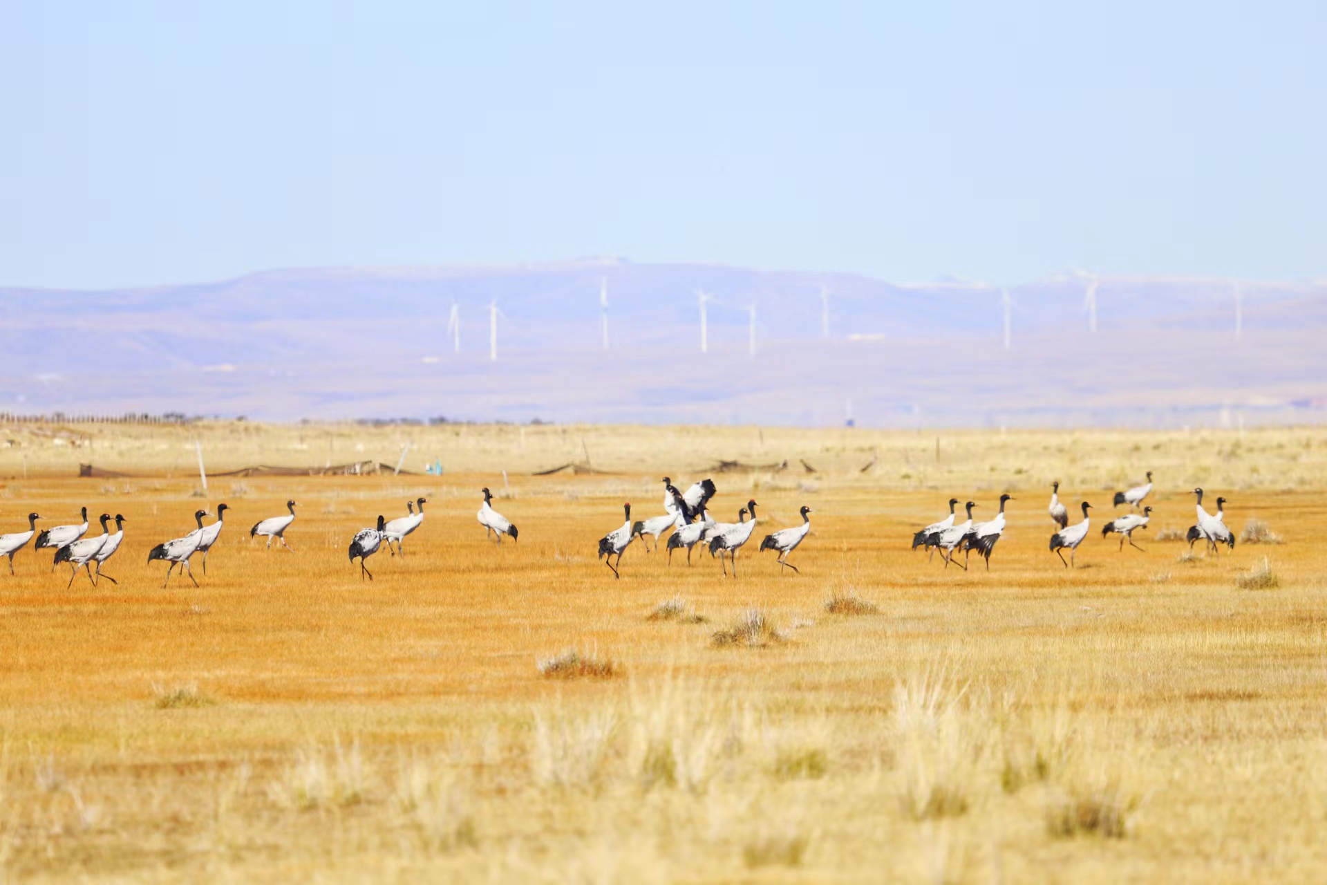 監(jiān)測到集群的黑頸鶴。青海湖國家級自然保護區(qū)管理局供圖
