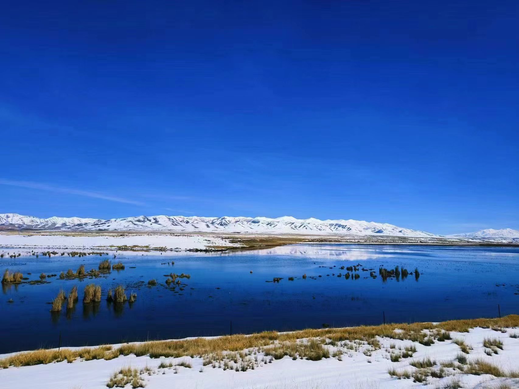 藍色的湖水與遠處的雪山相互映襯,宛如畫卷。青海湖國家級自然保護區(qū)管理局供圖