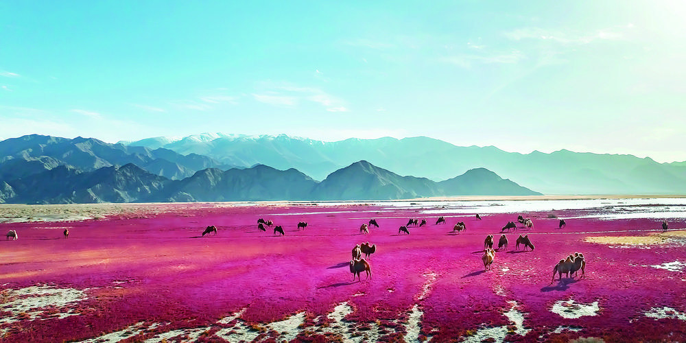 都蘭湖國家濕地公園位于烏蘭縣境內,地處柴達木盆地東北邊緣。這段時間,隨著天氣涼意漸濃,湖岸邊幾百畝遇冷變色的“鹽爪爪”逐漸染紅了大地,駱駝、黑頸鶴、斑頭雁等各類野生動物陸續(xù)來到這片壯美的“紅地毯”,嬉戲、覓食、休憩。