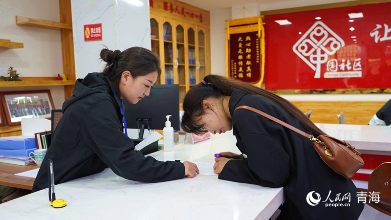 轄區(qū)居民在社區(qū)登記領(lǐng)取蟲草采集證。人民網(wǎng)記者 楊啟紅攝