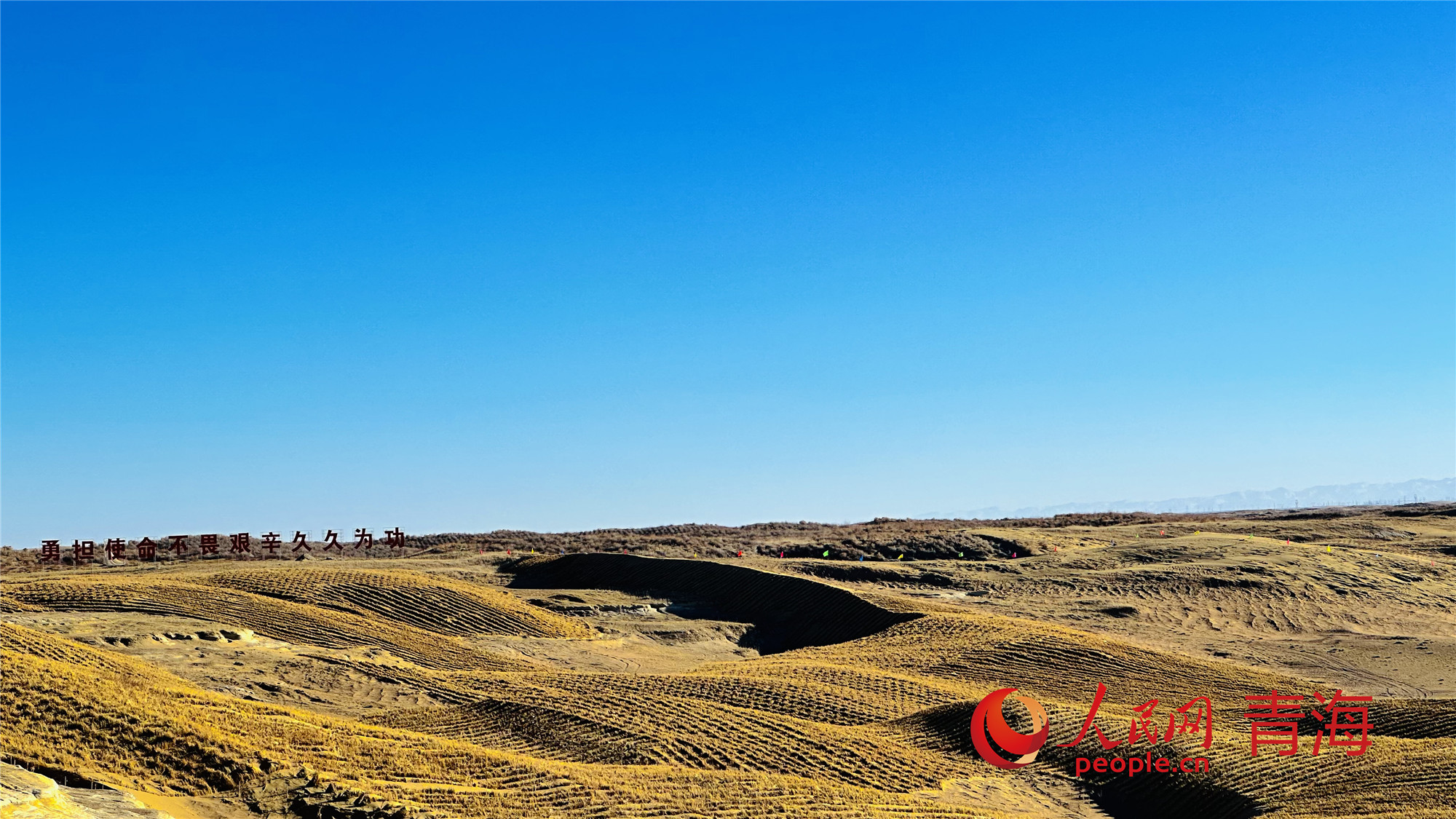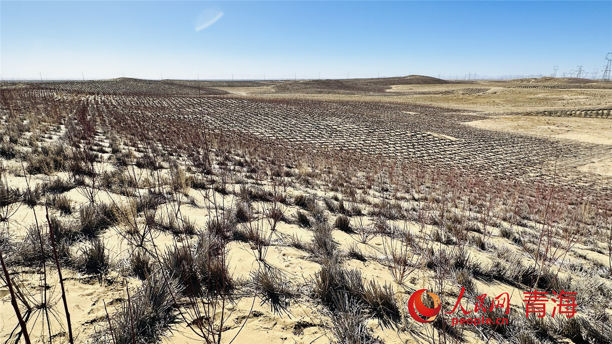 青海省海南州工程固沙點(diǎn)之一。人民網(wǎng)記者 劉沛然攝