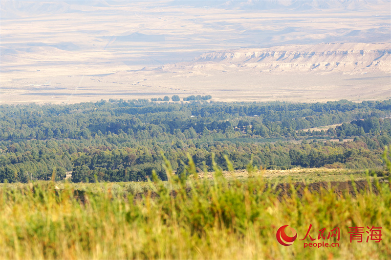 沙珠玉鄉(xiāng)位于共和盆地的地理中心位置。得益于數(shù)十年來(lái)“三北”防護(hù)林工程建設(shè),沙珠玉與周?chē)S沙遍布的模樣截然不同,從衛(wèi)星地圖上俯瞰,由防風(fēng)固沙林、農(nóng)田防護(hù)林等體系構(gòu)成的一條長(zhǎng)約20公里,最寬處約5公里紡錘形的綠色區(qū)域橫亙?cè)邶堁驆{水庫(kù)西北側(cè)。