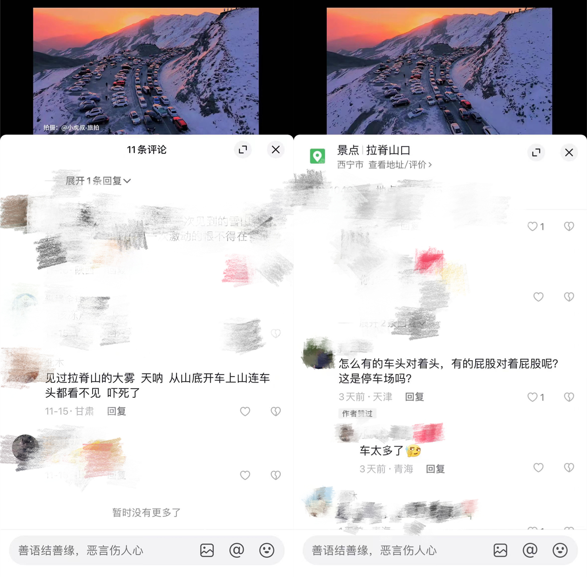 部分網(wǎng)友針對(duì)拉脊山日出的評(píng)論。截圖自抖音APP