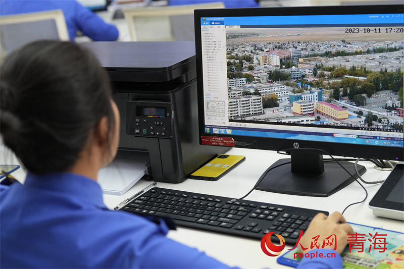 格爾木市智慧城市信息中心內(nèi)工作人員正在查看平臺(tái)。人民網(wǎng)記者 甘海瓊攝