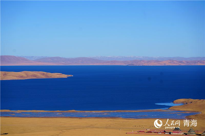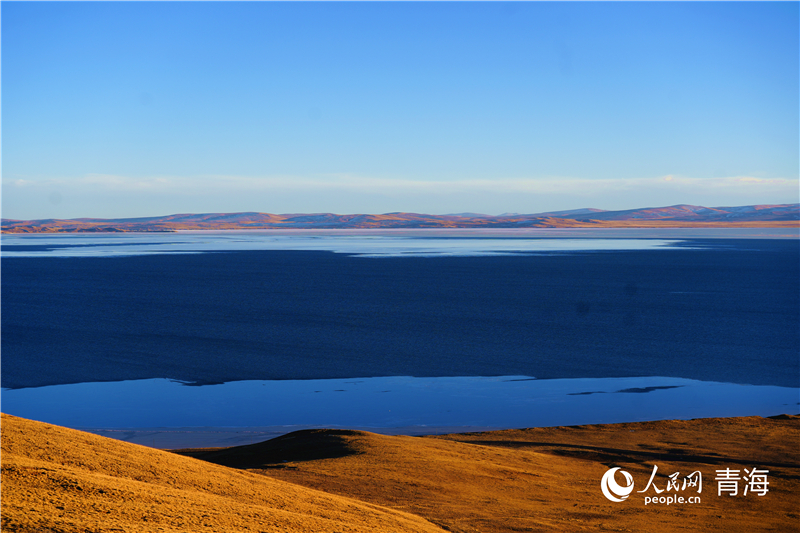 冬日鄂陵湖湖水湛藍(lán)。人民網(wǎng)記者 楊啟紅攝