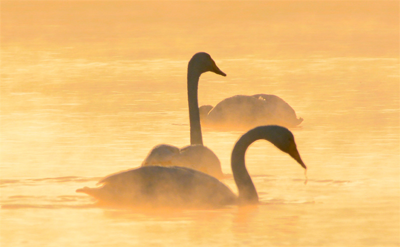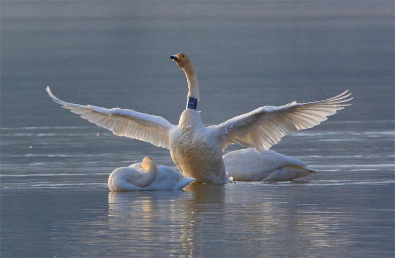 據(jù)了解,這片水域?qū)俟畭{庫區(qū)群科黃河段,2016年開始天鵝頻頻現(xiàn)身,每逢入冬就如約而至,這片水域便被當(dāng)?shù)厝朔Q為“天鵝湖”,每年來這里越冬的天鵝已經(jīng)從最初的十幾只增加到了一百余只。為了保護(hù)“天鵝湖”的生態(tài)環(huán)境持續(xù)向好,化隆縣林業(yè)和草原局積極安排部署,不斷加強(qiáng)保護(hù)天鵝宣傳與巡查力度,提醒廣大群眾愛護(hù)野生動物、文明觀賞、不要驚擾遷徙天鵝,確保天鵝安全。(張莉萍、李玉峰)