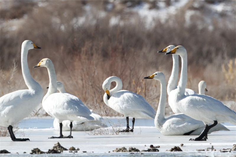 天鵝飛抵柴達(dá)木盆地可魯克湖越冬。青??婶斂撕?托素湖省級(jí)自然保護(hù)區(qū)供圖