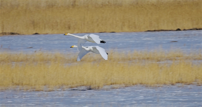 天鵝飛抵柴達(dá)木盆地可魯克湖越冬。青海可魯克湖-托素湖省級(jí)自然保護(hù)區(qū)供圖