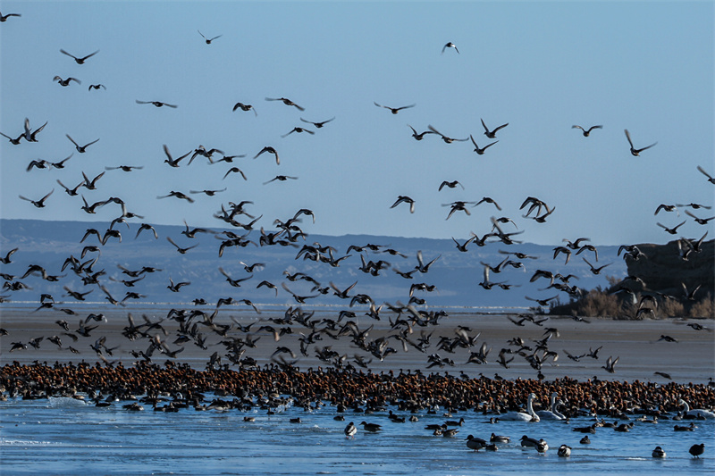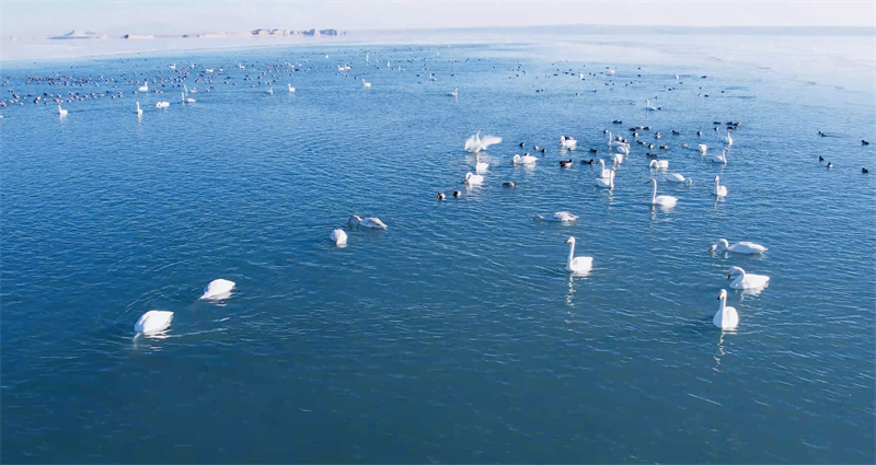 在柴達(dá)木盆地可魯克湖越冬的鳥類。青??婶斂撕?托素湖省級(jí)自然保護(hù)區(qū)供圖