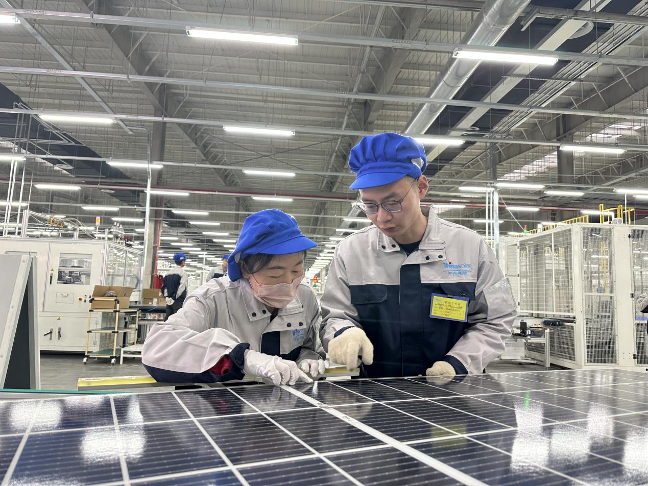 天合光能(青海)新能源有限公司青海大基地組件車間鏟引出線。李善霞攝