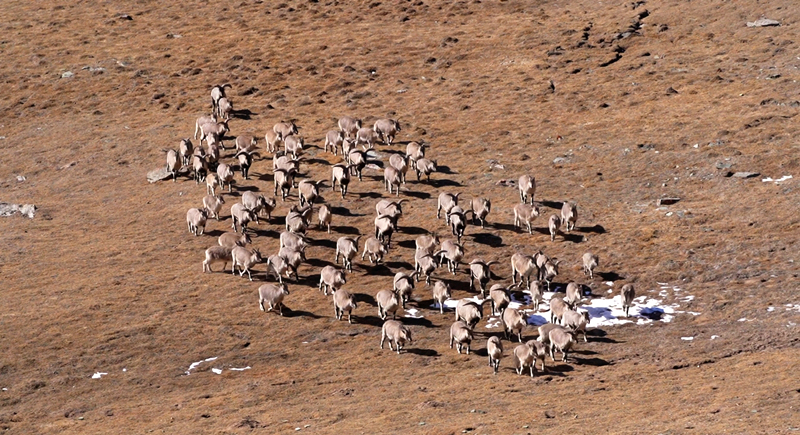 巖羊是國家二級保護動物,由于其警覺性非常高,難以接近,主要分布在我國的西北和西南地區(qū),它們習慣棲息在海拔2100至6300多米之間的高山裸巖、高山草甸、山谷之中,身體顏色與巖石極難分辨,具有極高的攀巖技術(shù),可在絕壁、高山峭壁上自由跳躍,有“巖壁上的精靈”之稱。(楊啟紅、任靜、謝海群、才仁)