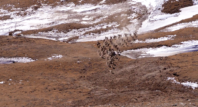 寒冬時節(jié),近百只巖羊在青海省海西蒙古族藏族自治州烏蘭縣柯柯鎮(zhèn)境內(nèi)的山川中飛奔,場景十分壯觀。此前,當?shù)孛襟w記者在該地多次拍到巖羊出沒影像,規(guī)模和數(shù)量在逐年增加,見證了當?shù)厣鷳B(tài)環(huán)境的日益向好。