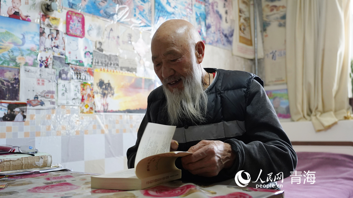 彭德運(yùn)老人正在看書。人民網(wǎng)記者 楊啟紅攝