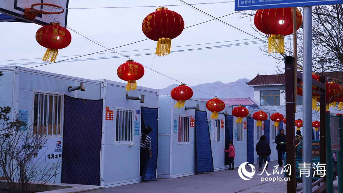 民和縣一集中安置點(diǎn)內(nèi),紅燈籠增加了年味兒。人民網(wǎng)記者 楊啟紅攝