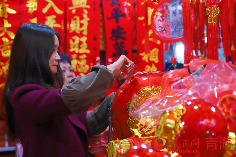 火紅的春聯(lián)、燙金的福字、高高掛起的紅燈籠已然開售,蔬菜、水果、零食等各類年貨滿目琳瑯,服飾箱包更是開啟新年大促……隨著春節(jié)腳步的臨近,青海西寧消費(fèi)市場(chǎng)喜慶的氛圍愈發(fā)濃厚,商場(chǎng)、超市一片紅火。