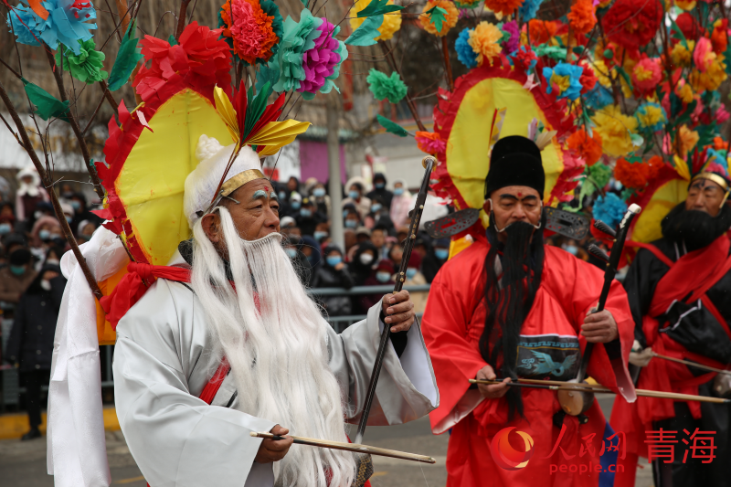 青海湟源:民俗添彩年味濃 社火展演鬧元宵