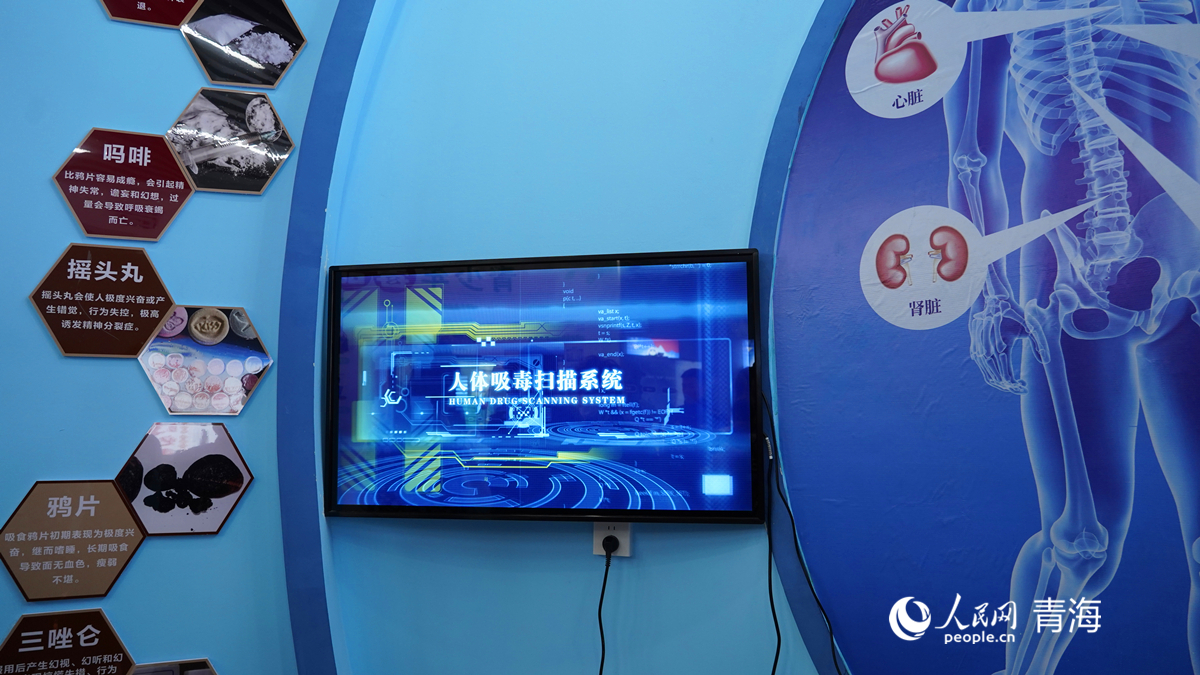 貴德縣河陰社區(qū)戒毒(康復(fù))工作站內(nèi)的人體吸毒掃描系統(tǒng),通過掃描,可直觀了解毒品對(duì)人體的危害。人民網(wǎng)記者 楊啟紅攝