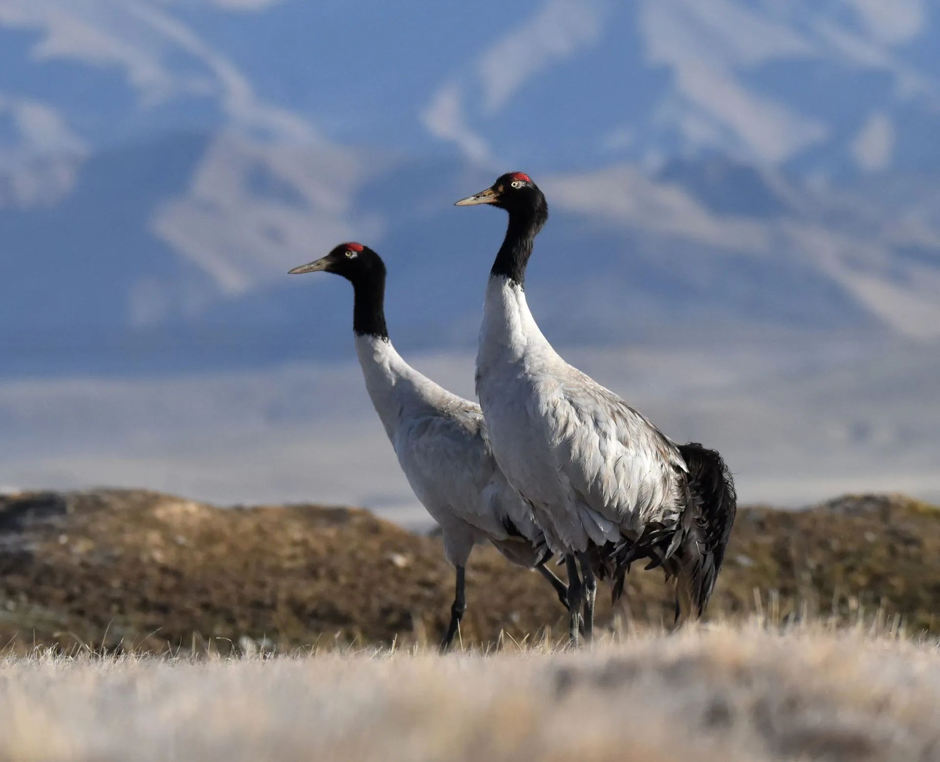 黑頸鶴是我國國家一級重點保護野生動物,被世界自然保護聯(lián)盟列為易危物種,是唯一一種生活在高原上的鶴類,也是鶴屬鳥類中認識最晚的一個物種,目前全球種群數(shù)量在17000只左右。