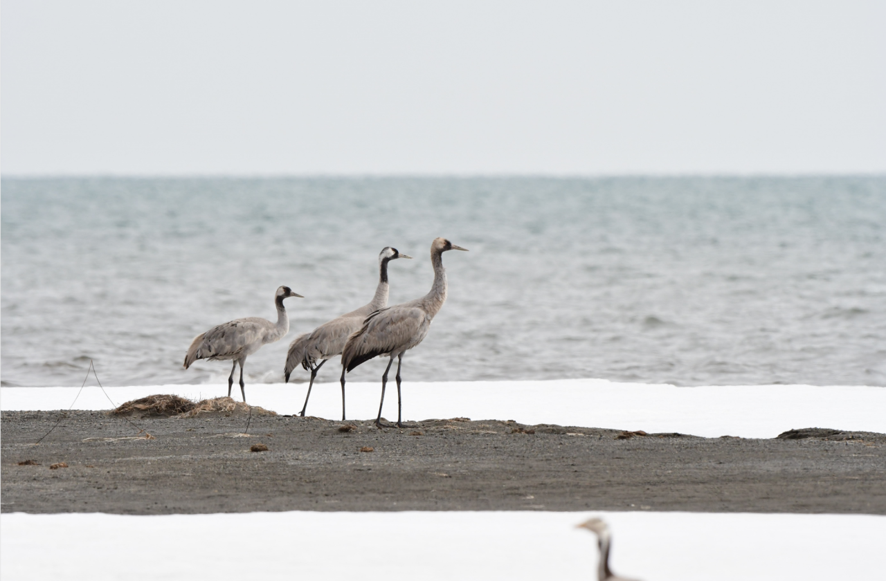 在開展青海省黑頸鶴調(diào)查研究的同時,還對遷徙經(jīng)過青海的蓑羽鶴和灰鶴進行了衛(wèi)星跟蹤研究。結(jié)果顯示,蓑羽鶴在青海時空分布規(guī)律為:秋季遷徙路過青海,路線固定,僅作短暫停歇,集群數(shù)量10萬只左右;春季僅在海南州局部區(qū)域有20只左右的小種群停留?;寅Q在青海的時空分布規(guī)律為:春秋兩季都有2萬多只的灰鶴遷徙經(jīng)過青海省海西州,夏季有零星個體與黑頸鶴非繁殖個體混群活動,但未發(fā)現(xiàn)有繁殖對和筑巢,冬季有少許家庭群在青海西部越冬。根據(jù)世界自然保護聯(lián)盟(IUCN)瀕危物種紅色名錄,蓑羽鶴全球數(shù)量約23萬只、灰鶴約50萬只,隨著這兩種鶴類的全球種群數(shù)量和分布的不斷增加和擴大,在青海省的數(shù)量和分布都有擴大的可能,未來將進一步加強深入研究,全面掌握兩種遷徙鶴類在青海省的分布格局。