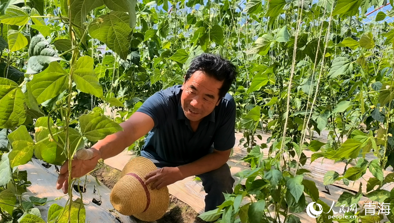 查看自家大棚中農(nóng)作物長勢的朱紅衛(wèi)。人民網(wǎng) 馬可欣攝
