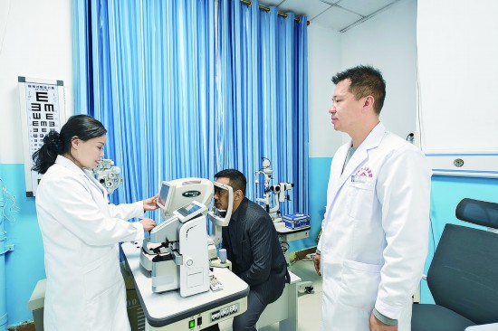 在一樓眼科門診內(nèi),主治醫(yī)師王鵬正盯著徒弟巴久為病人進行檢查,“她現(xiàn)在可以的?!蓖貔i悄聲說。