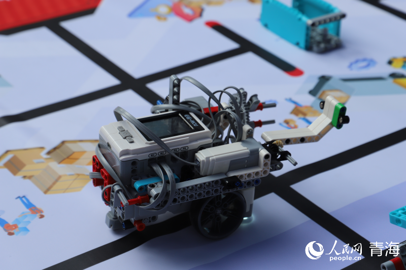 學生制作的智慧物流機器人。人民網(wǎng) 馬可欣攝