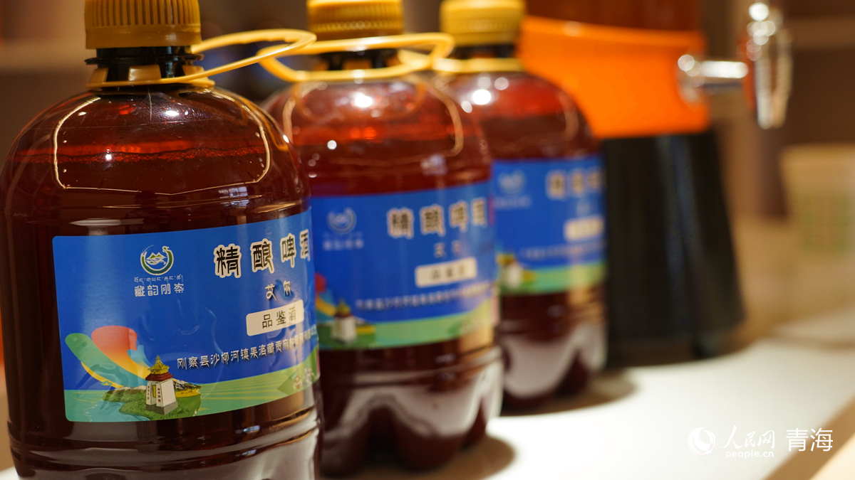 產(chǎn)自果洛藏貢麻村的青稞啤酒。人民網(wǎng)記者 楊啟紅攝