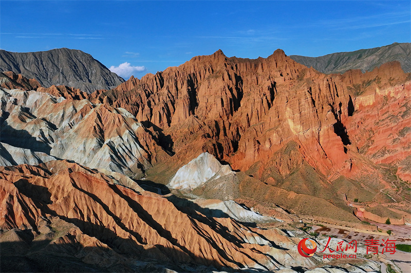一場雨后,青海貴德國家地質(zhì)公園的丹霞山洗去了塵埃,深深淺淺的紅,在陽光下顯得熱烈而奔放。從空中俯瞰,連綿起伏的紅色山巒, 似是大自然用無盡詩意繪就的一幅畫卷,色彩斑斕而富有想象力。