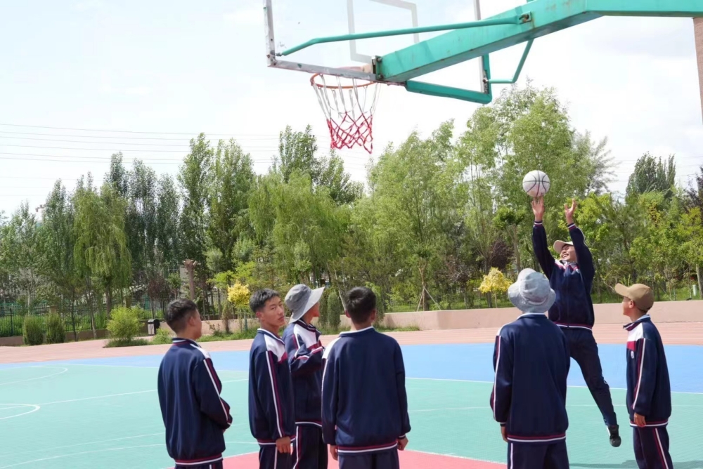 圖為果洛西寧民族中學的學生在籃球場揮灑汗水。喬棟攝。