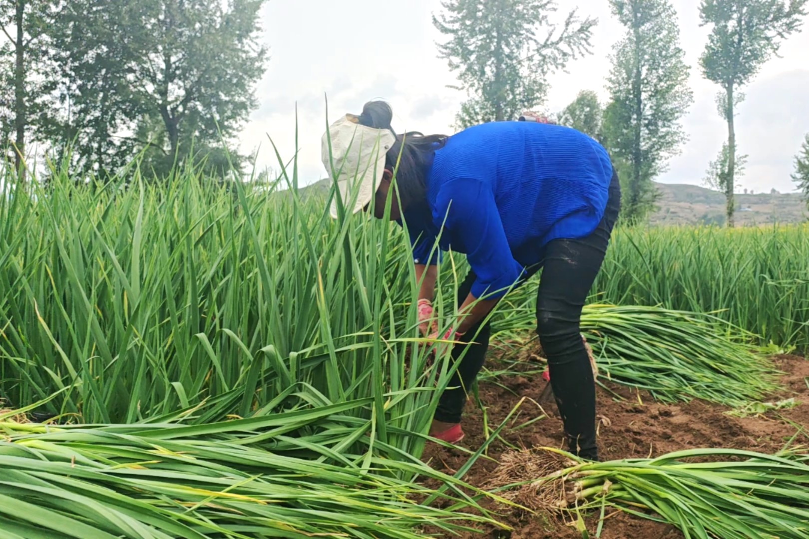 湟中區(qū)攔隆口鎮(zhèn)千戶營(yíng)村,湟中旺英益?zhèn)}種養(yǎng)殖專業(yè)合作社種植的40畝蒜苗也陸續(xù)進(jìn)入采收季,地里連片的蒜苗長(zhǎng)勢(shì)喜人,村民們忙著挖蒜苗、打捆、裝車。