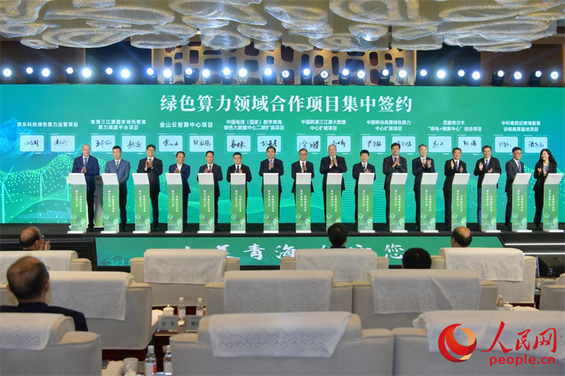 3月29日在北京舉行的青海綠色算力產(chǎn)業(yè)發(fā)展推介會(huì)上,綠色算力領(lǐng)域合作項(xiàng)目集中簽約。人民網(wǎng)記者 任峰濤攝