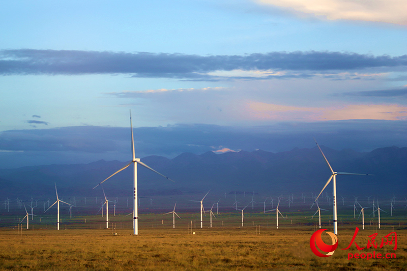 青海省海南藏族自治州共和縣境內(nèi),大型風(fēng)力發(fā)電機(jī)隨風(fēng)旋轉(zhuǎn),汩汩綠電在這里積聚,一路向東,點(diǎn)亮中原之燈。人民網(wǎng)記者 楊啟紅攝