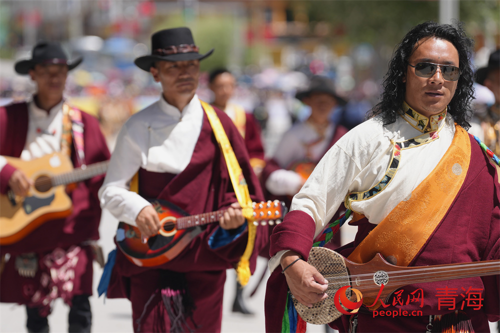 巡演現(xiàn)場(chǎng),玉樹(shù)馬術(shù)方隊(duì)、康巴漢子方隊(duì)、伊舞方隊(duì)、藏族彈唱方隊(duì)、格仲服飾方隊(duì)、游牧方隊(duì)、玉樹(shù)州非物質(zhì)文化遺產(chǎn)傳承人方隊(duì)等輪番登場(chǎng),形式多樣的非遺展演為廣大游客和當(dāng)?shù)厝罕妿?lái)了一場(chǎng)視覺(jué)盛宴。