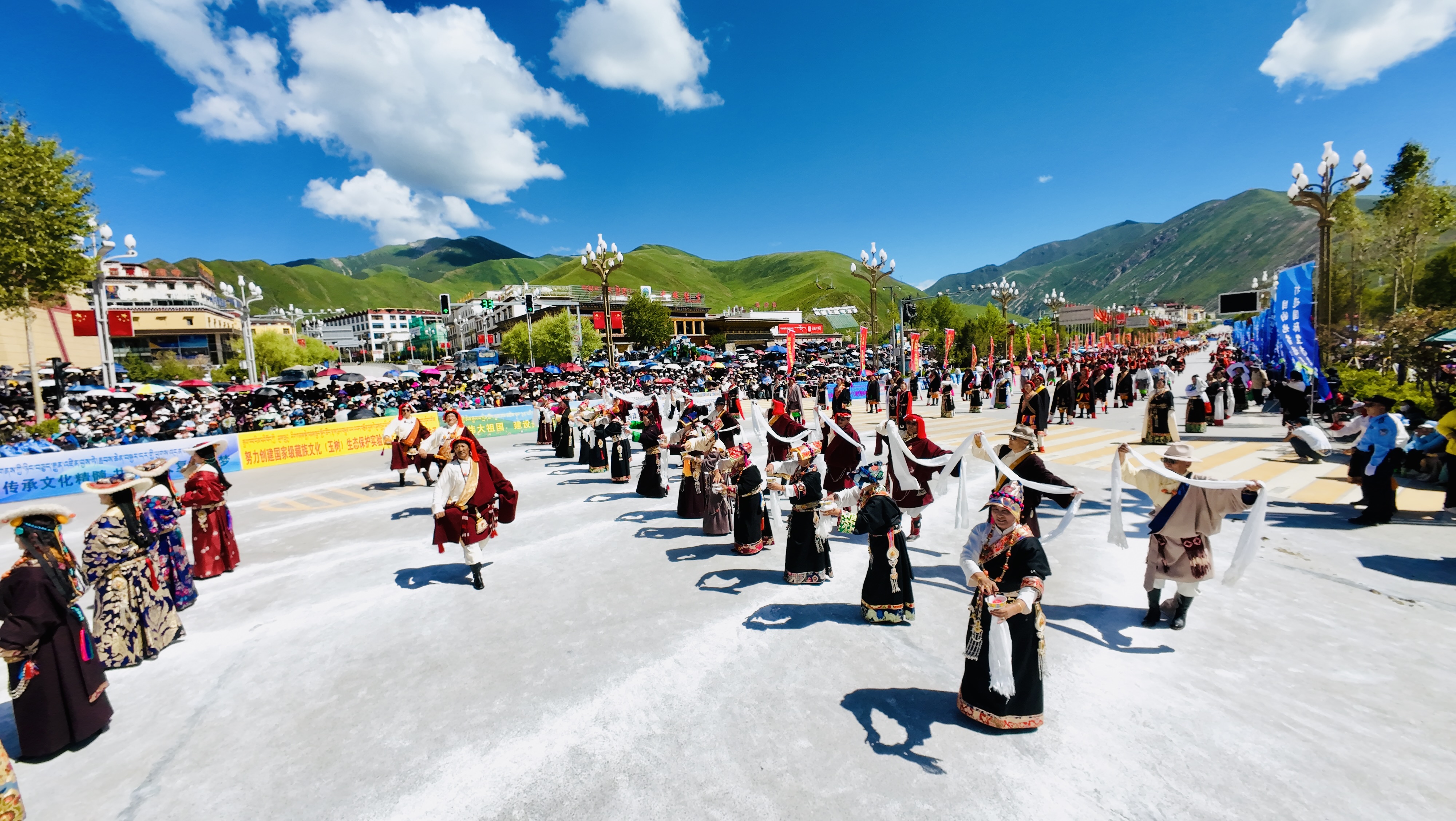 湛藍(lán)的天空映襯著高原的江河,潔白的雪山滋養(yǎng)無(wú)垠的牧場(chǎng),又是一年高山流水縈繞著牧歌的時(shí)節(jié)。7月24日,一場(chǎng)行走的非遺展在青海省玉樹(shù)藏族自治州玉樹(shù)市街頭上演?!盀t灑的康巴人”——國(guó)家級(jí)藏族文化(玉樹(shù))生態(tài)保護(hù)實(shí)驗(yàn)區(qū)建設(shè)成果非遺巡演現(xiàn)場(chǎng),瀟灑多彩的玉樹(shù)民族民俗文化在此呈現(xiàn)。